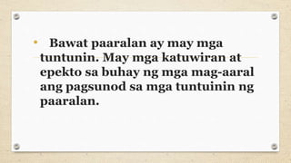 Ano ang tungkulin ng isang mag-aaral. Ang mga halaga ng paaralan ay ang mga pamantayan at pag-uugali na gumagabay sa mga bata sa paaralan. Kinikilala sa ganitong uri ng pagsulat ang husay ng.